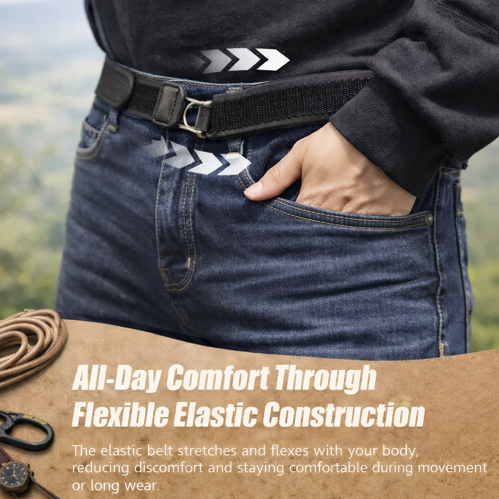Built with a durable elastic weave, this belt moves naturally with your body instead of fighting against it. Unlike rigid leather or stiff nylon belts that dig into your waist, the elastic design flexes as you walk, sit, or work, reducing pressure and discomfort. The result is a belt that feels supportive without feeling restrictive.