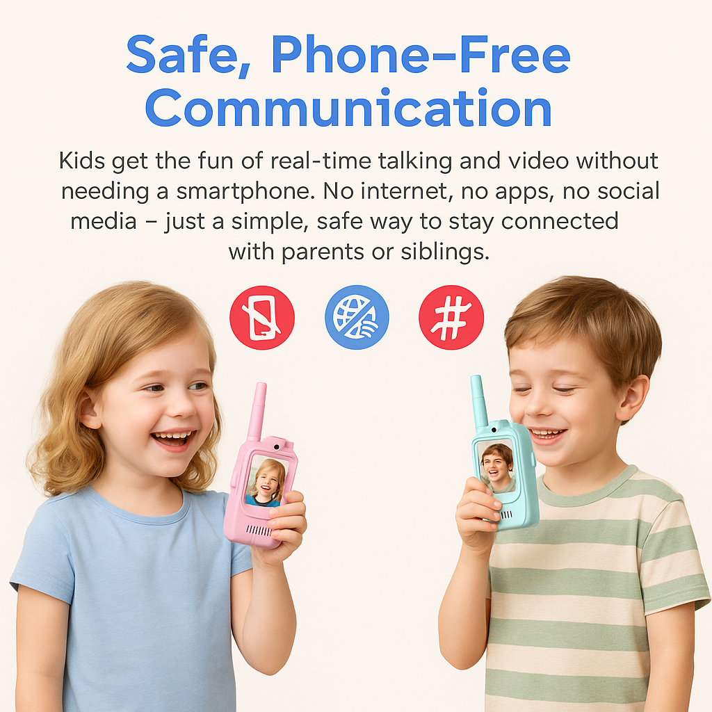 Kids get the fun of real-time talking and video without needing a smartphone. No internet, no apps, no social media — just a simple, safe way to stay connected with parents or siblings.
