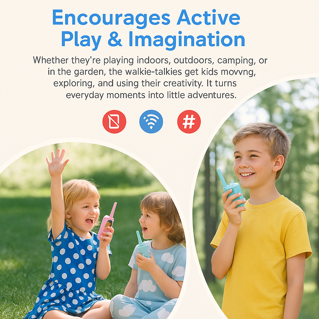 Whether they’re playing indoors, outdoors, camping, or in the garden, the walkie-talkies get kids moving, exploring, and using their creativity. It turns everyday moments into little adventures.